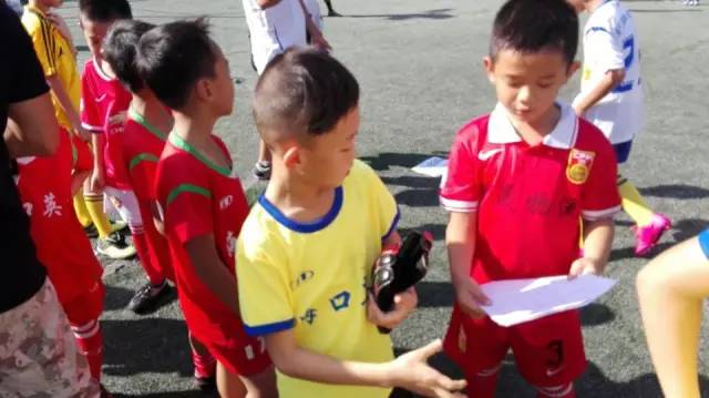 两支球队各自站在自己的区域,眼神坚毅的盯着对方,在裁判员的口令下,比赛正式开始了,站在一旁的家长也跟着紧张起来,目不转睛的看着自己的孩子在场上的一举一动,还有好多家长给自己的孩子呐喊助威。比赛一开始,球队便进行激烈的争夺,带球,传球,每一步都是那么的小心翼翼。要说最紧张的应该是守门员了,为了守住自己的“家”门口,眼睛死死的盯着前方被传来传去的球,脚步也左右一点点挪动着。天气很炎热,孩子们的衣服都湿透了,额头上、脸上也在不断的冒汗,但这一点也不能够抵挡孩子们想夺冠的心,依然脚带着球迈开闪电般的步伐在赛场上驰骋,真是太拼了!在这里,小编哥哥要为你们拼搏的精神点个大大的赞!