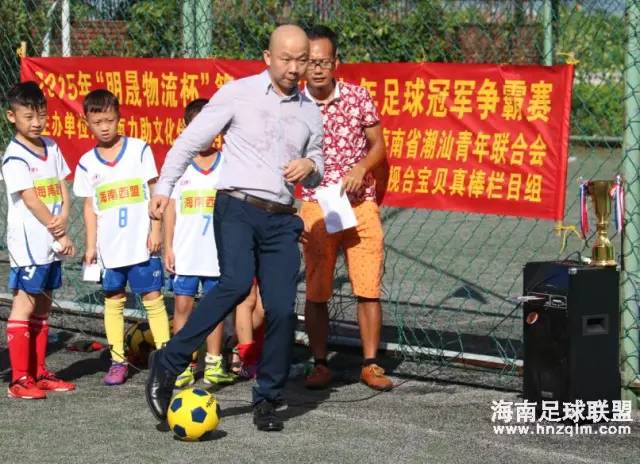 赛事冠名赛“明晟物流”代表在开幕式现场表达了对海南少年足球冠军争霸赛的期待,同时寄语小球员们奋勇拼搏,激闯绿茵。